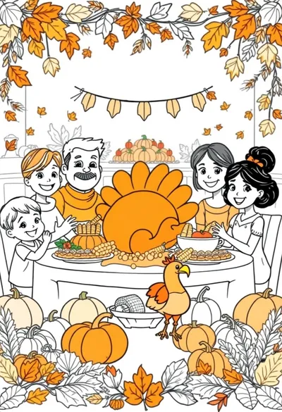 A Cheerful Cartoon Thanksgiving Feast Coloring Page For All Coloring Page