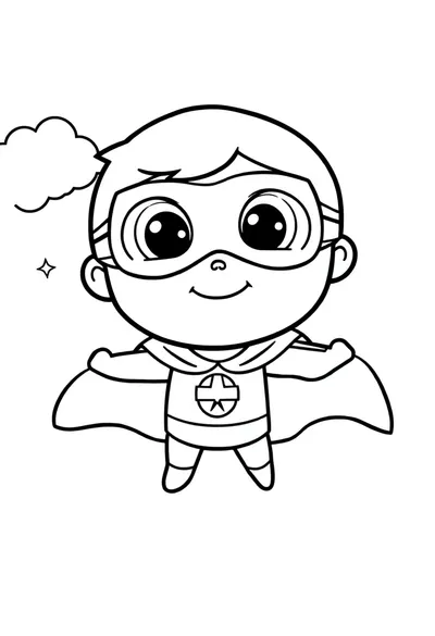 A Cute, Friendly, Cartoon Superhero Coloring Page For Kids A Coloring Page